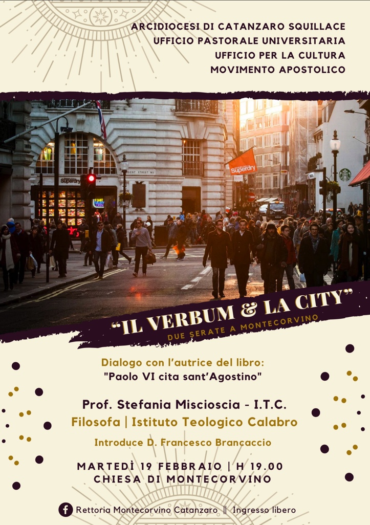 Si tratta di due appuntamenti che fanno parte del progetto di evangelizzazione “Il Verbum e la City” il cui obbiettivo principale è favorire il dialogo tra la fede cristiana e l’impegno per la costruzione umana e sociale della città in cui viviamo attraverso relazioni più giuste e più vere.Siamo consapevoli che il potere trasformante del Vangelo va sempre favorito.