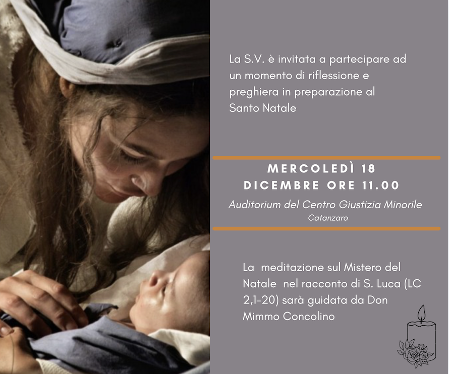 Una meditazione sul Vangelo di Luca (cap 2), sarà l’oggetto di una mia meditazione in preparazione al Santo Natale, presso l’Auditorium del Centro Giustizia Minorile di Catanzaro in Via Paglia.